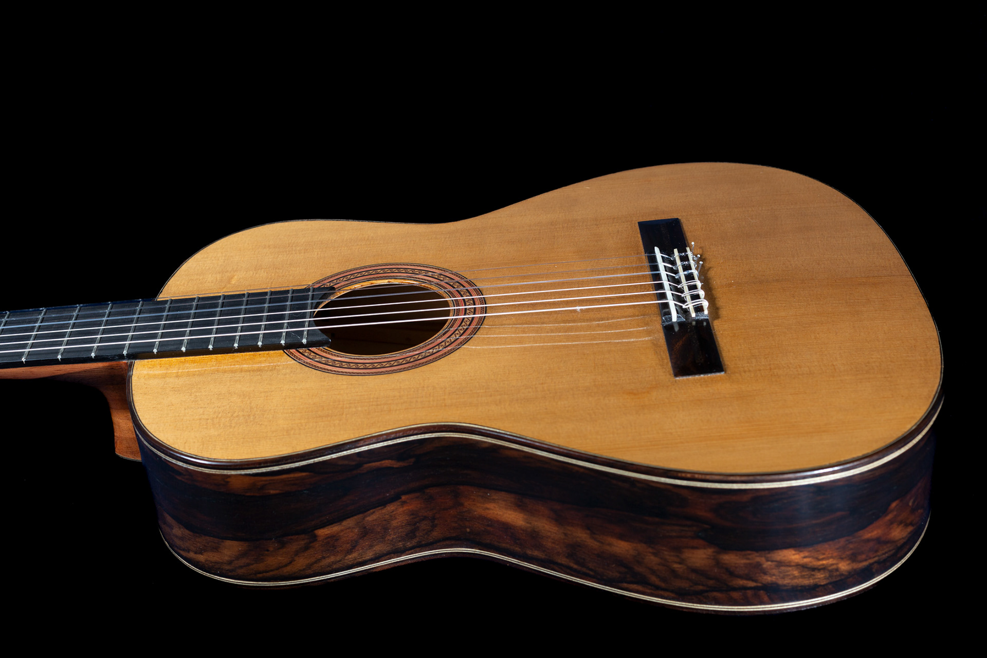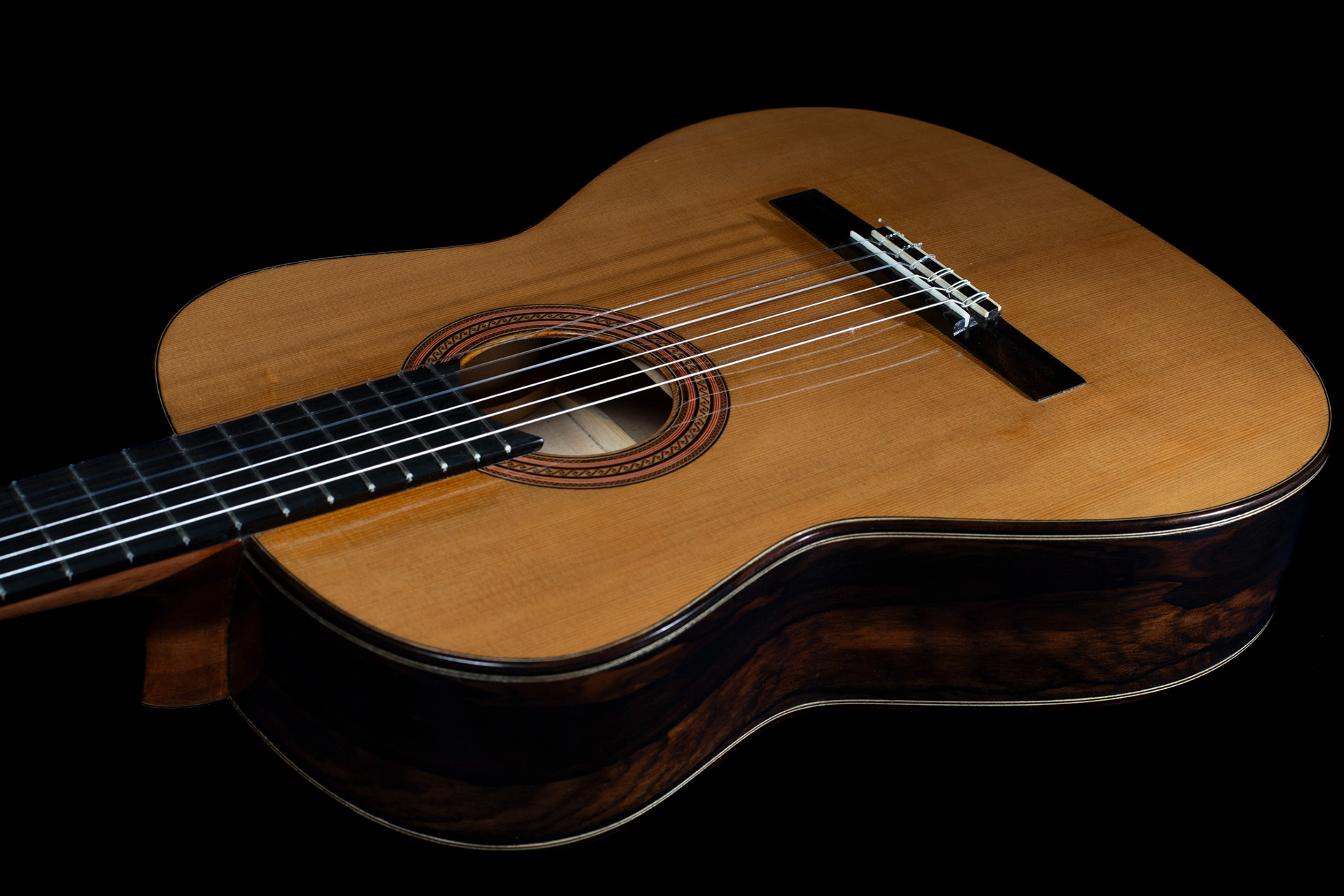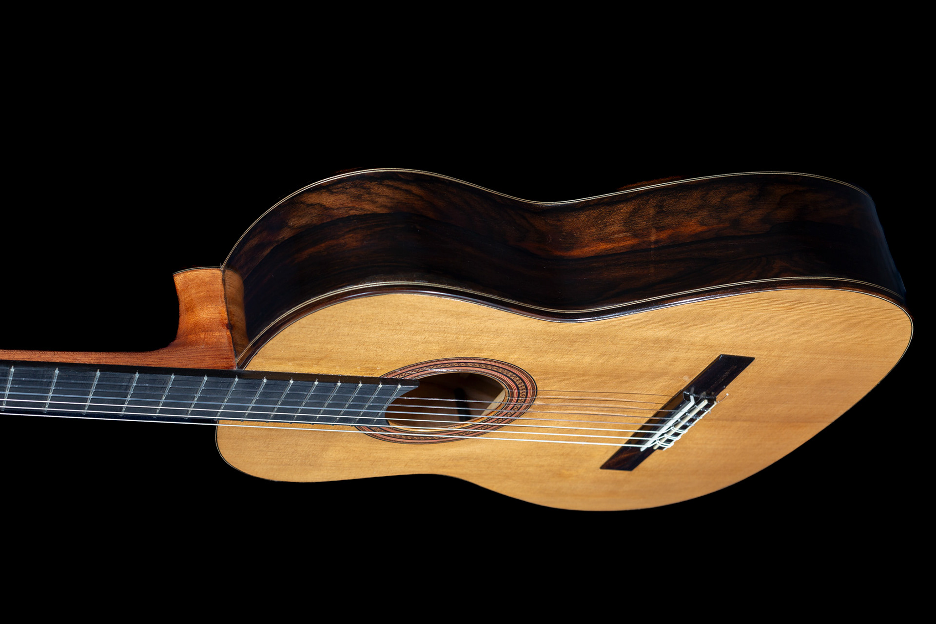 Chitarra di grande proiezione e variazioni timbriche, con incatenatura interna in cedro torrefatto. Chitarra dai bassi profondi e cantini dal notevole sustain ed in equilibrio. Per il concertista esigente.