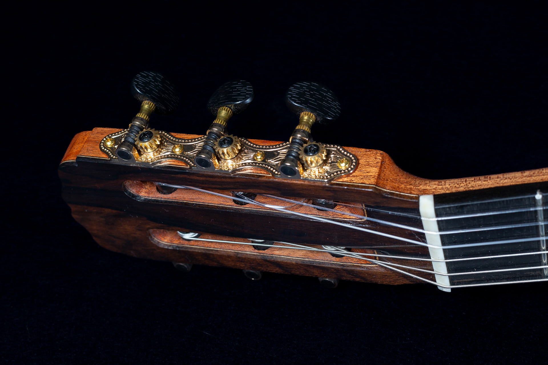 Caratteristiche: ( Diapason 650 , 51 al capotasto, 62 al XXII° ). Tavola armonica Abete Val di fiemme torrefatta Fondo e fasce in Ziricote messicano Manico in Mogano Honduras, tastiera in ebano Gabon. Verniciatura a gomma lacca. Meccaniche Rubner Intonazione cassa F#.